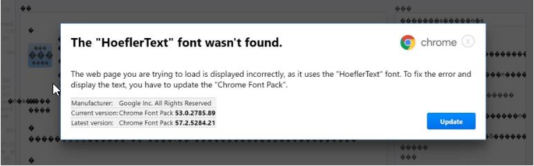 Güvenlik firması NeoSmart Technologies’den Mahmoud Al-Qudsi tarafından keşfedilen hack, ele geçen bir WordPress web sayfasında ortaya çıktı. Hack, Javascript ile sayfadaki metni değiştiriyor ve kullanıcıya karışık karakterler gösteriyor. Sayfanın içeriği bozuk gibi görünürken, “gerekli yazı tipinin bulunamadığını” söyleyen bir açılır pencere görüntüleniyor. Sorunu çözmek üzere kullanıcıdan “Chrome yazı tipi paketini” yüklemesi isteniyor.