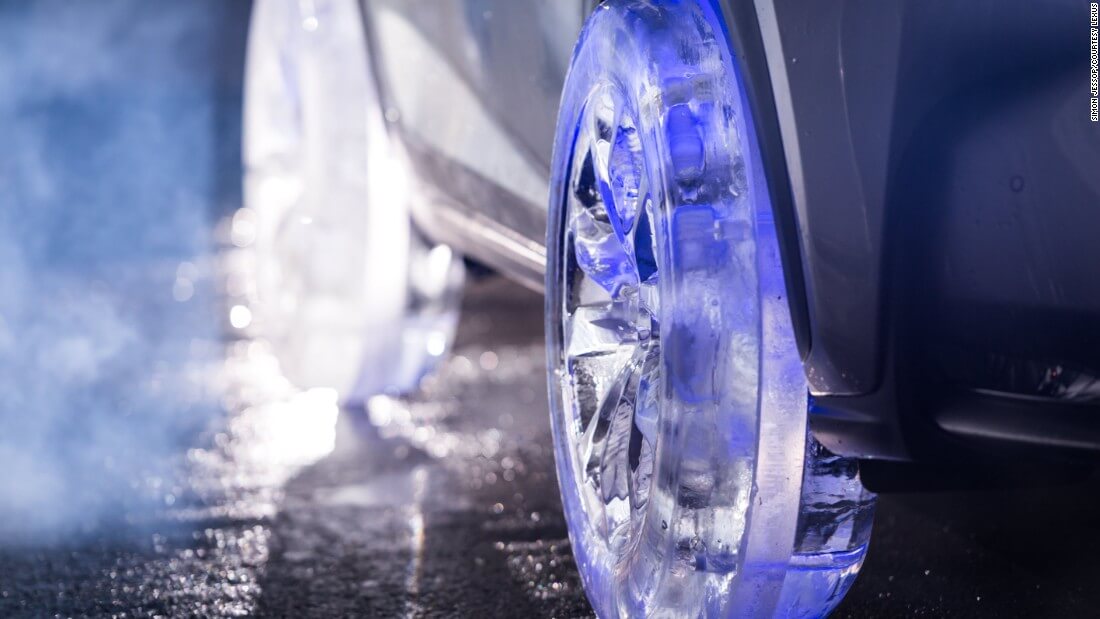 Lexus, 5 kapılı crossover SUV’unun tekerleklerini tamamen buzdan üretti. İngiltere tabanlı Hamilton Ice Sculptors’ın imzasını taşıyan bu tekerleklerden her biri için dört heykeltraşın 36 saat boyunca çalıştığı belirtiliyor. Araçtaki buz etkisini artırmak için de aracın -30 derecede beş gün boyunca derin dondurucuda bekletildiği ifade ediliyor. Tekerleklerde yer alan mavi renkteki LED aydınlatmayla oldukça havalı bir görünüme kavuşan aracın buzdan üretilen tekerleklerle yol kat edebildiğini de altını çizelim. Lexus ve Hamilton Ice Sculptors iş birliğiyle geliştirilen bu sıra dışı çalışmanın videosunu haberin devamında izleyebilirsiniz.