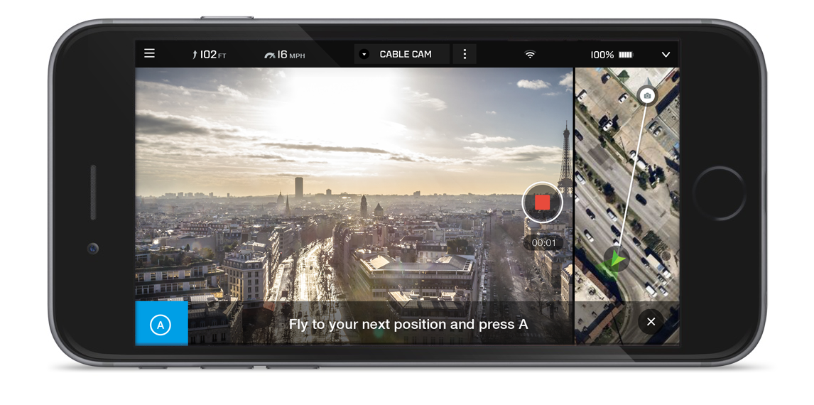Drone’un en önemli özelliklerinden biri olan Cable Cam, kullanıcının akıllı telefon üzerinde belirlediği noktaya drone’un otomatik olarak uçuş yapmasını sağlıyor. Bu sayede drone’u kontrol eden kişinin uçuşla ilgili herhangi bir şeyle uğraşmasına gerek kalmıyor ve yalnızca kamera açılarını ayarlaması yeterli oluyor.